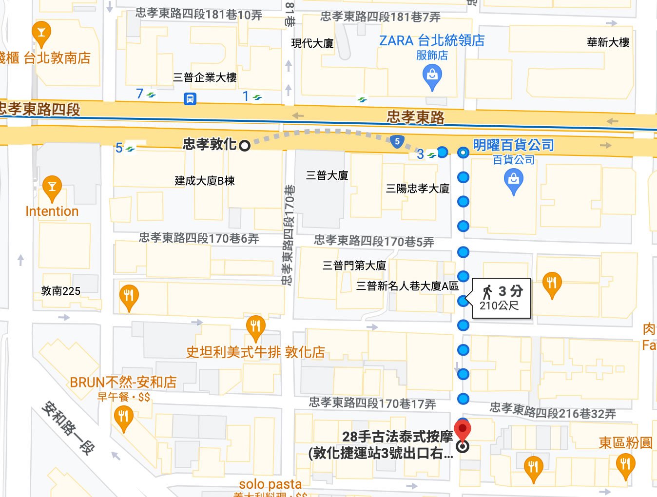在明曜百貨前的巷口右轉